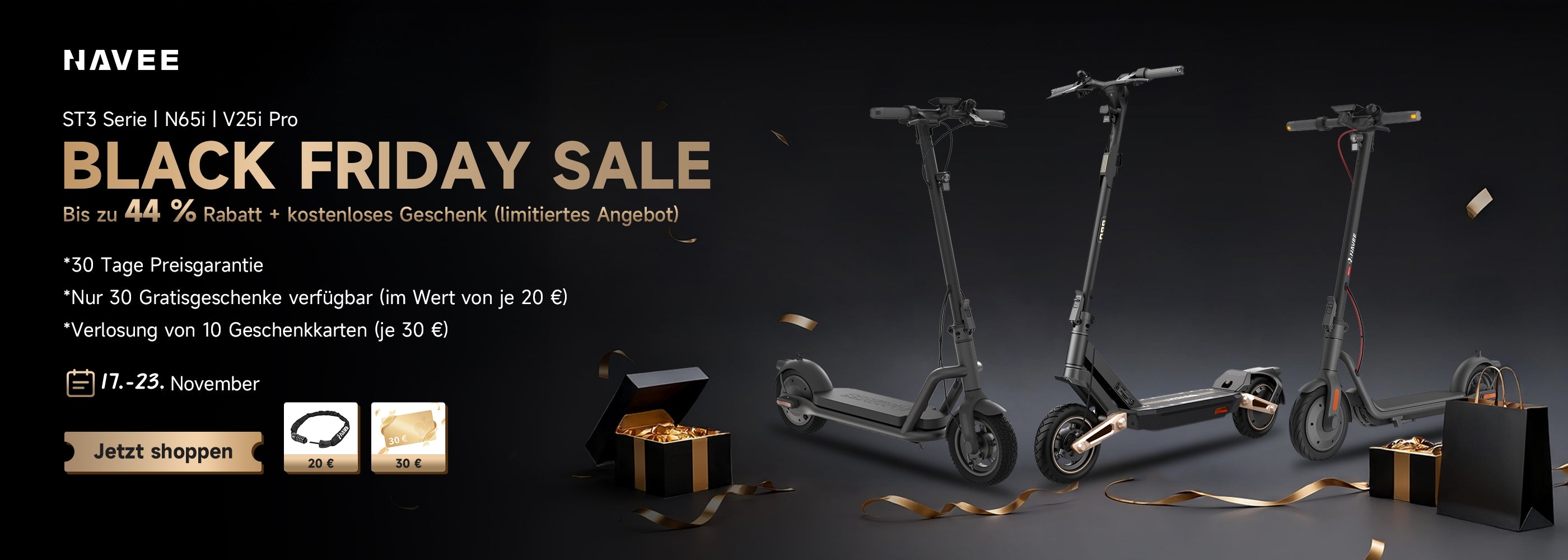 NAVEE GT3 Max E-Scooter ABE Zertifiziert 400W Motor | 75 km Reichweite | Vierfach-Federung