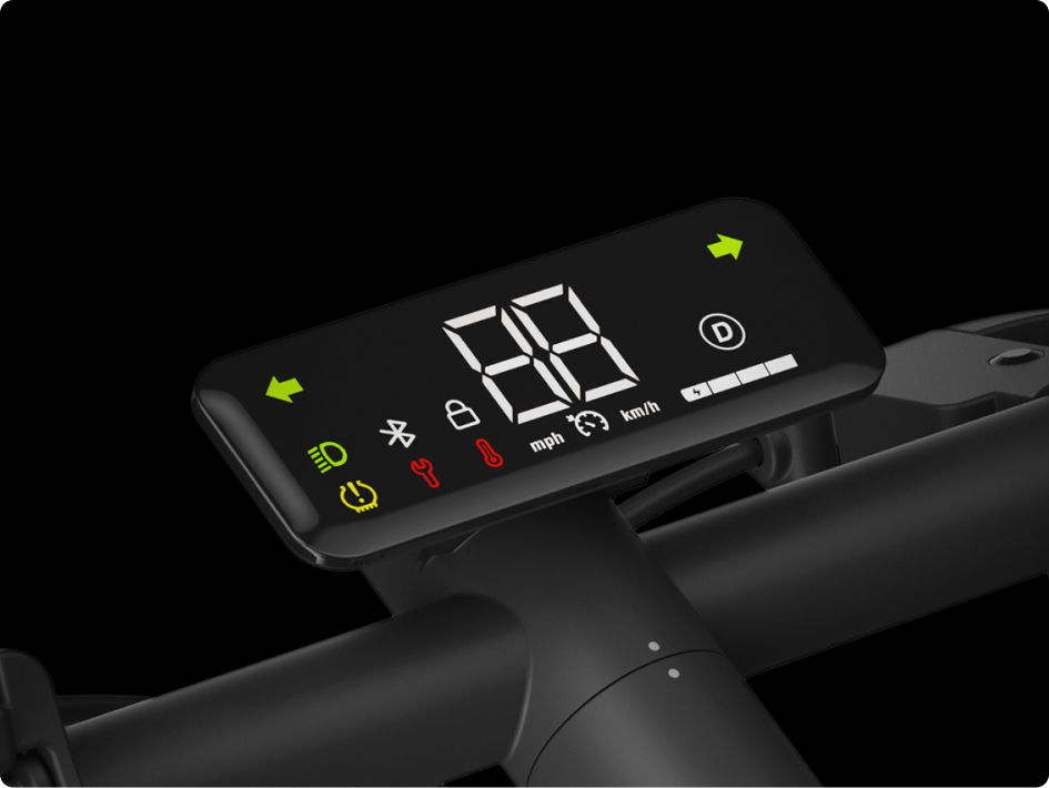 Large 4-inch display: The display is divided into three clear sections so you always have all the important information at a glance: vehicle status, speed and gear/battery level.