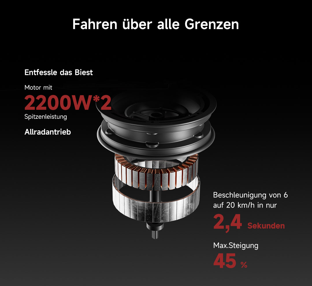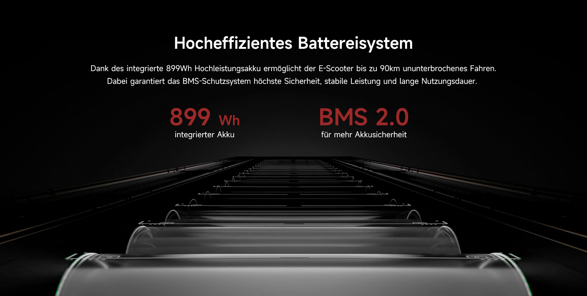 Die Reichweite wird maximiert, indem bei jedem Bremsen oder Loslassen des Gashebels Energie zurückgewonnen wird. Die Einstellungen für die Energierückgewinnung können über die App angepasst werden.