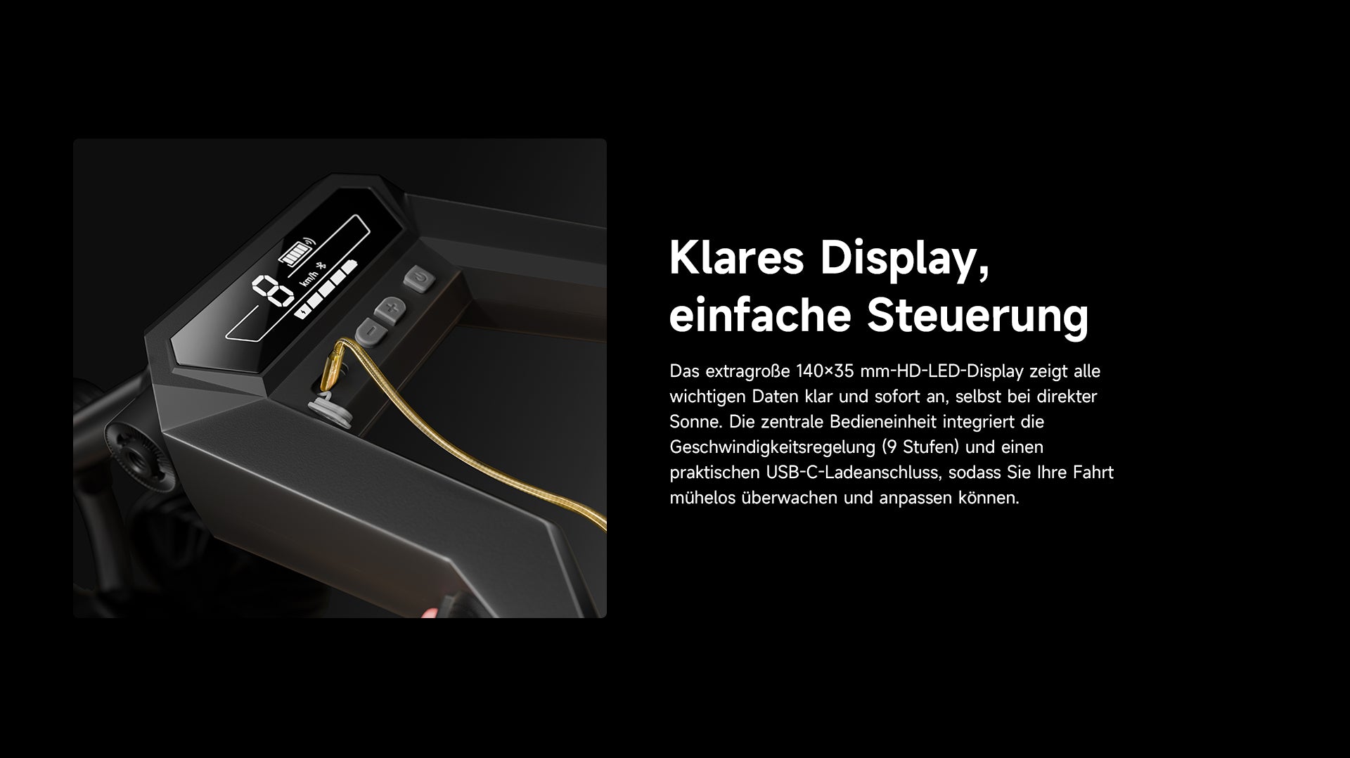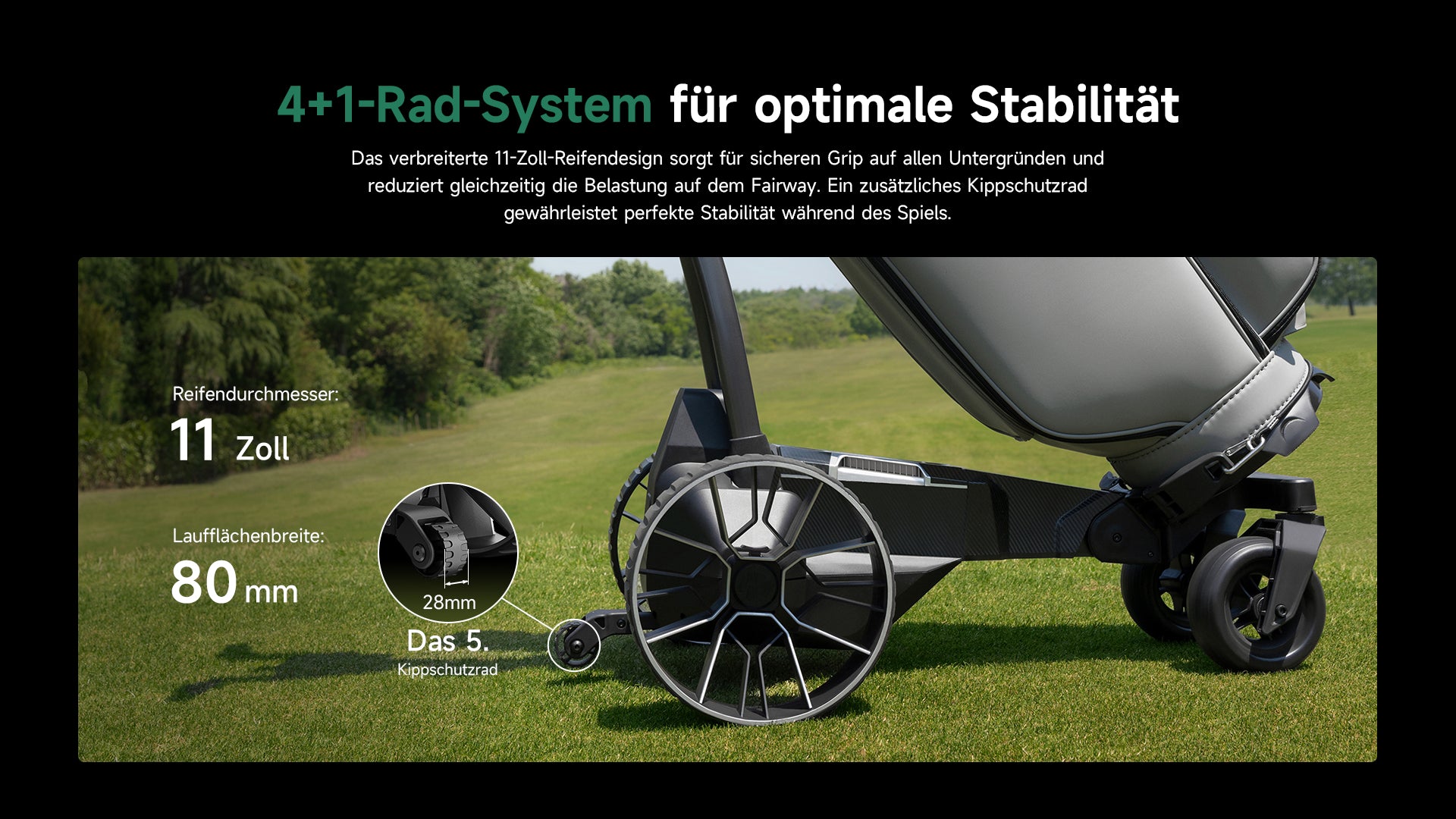 Geländetauglich: 11-Zoll-Räder, 220 Watt