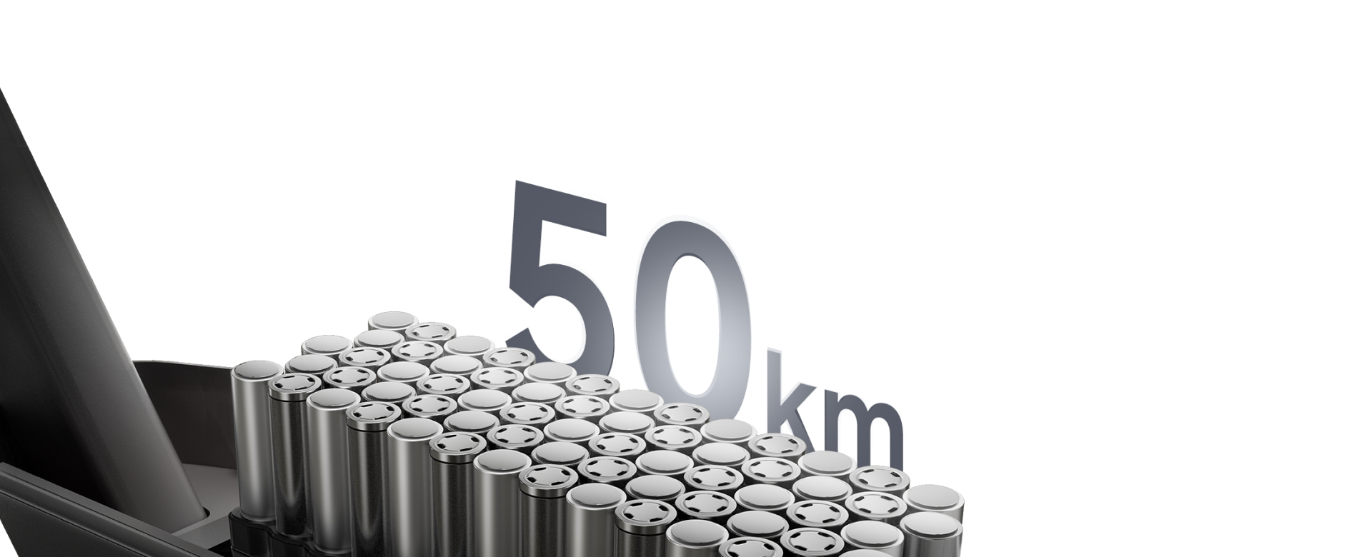 Genießen Sie mit einem robusten Batteriesystem bis zu 50 km ununterbrochene Fahrt, unterstützt durch das BMS (Batteriemanagementsystem) für ein reibungsloses und lang anhaltendes Erlebnis.