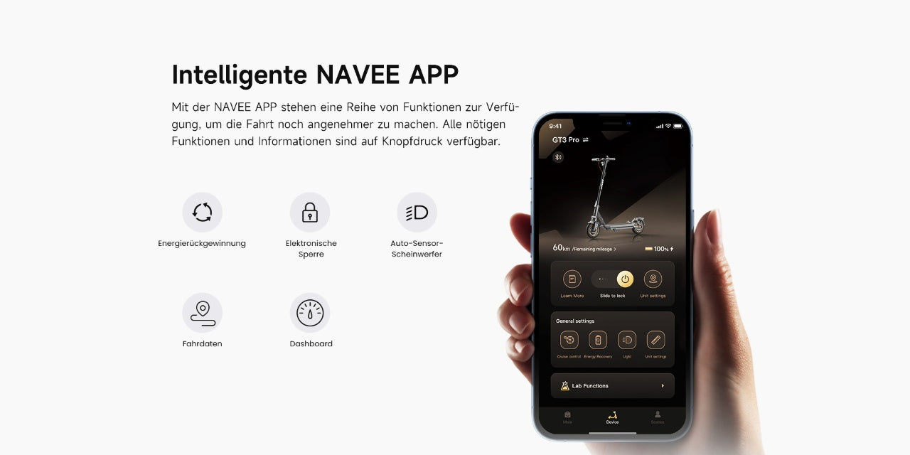 Die schwarzen und goldenen Details dieses Rollers bieten eine perfekte Mischung aus Stil und Komfort und machen jede Fahrt luxuriös und angenehm.