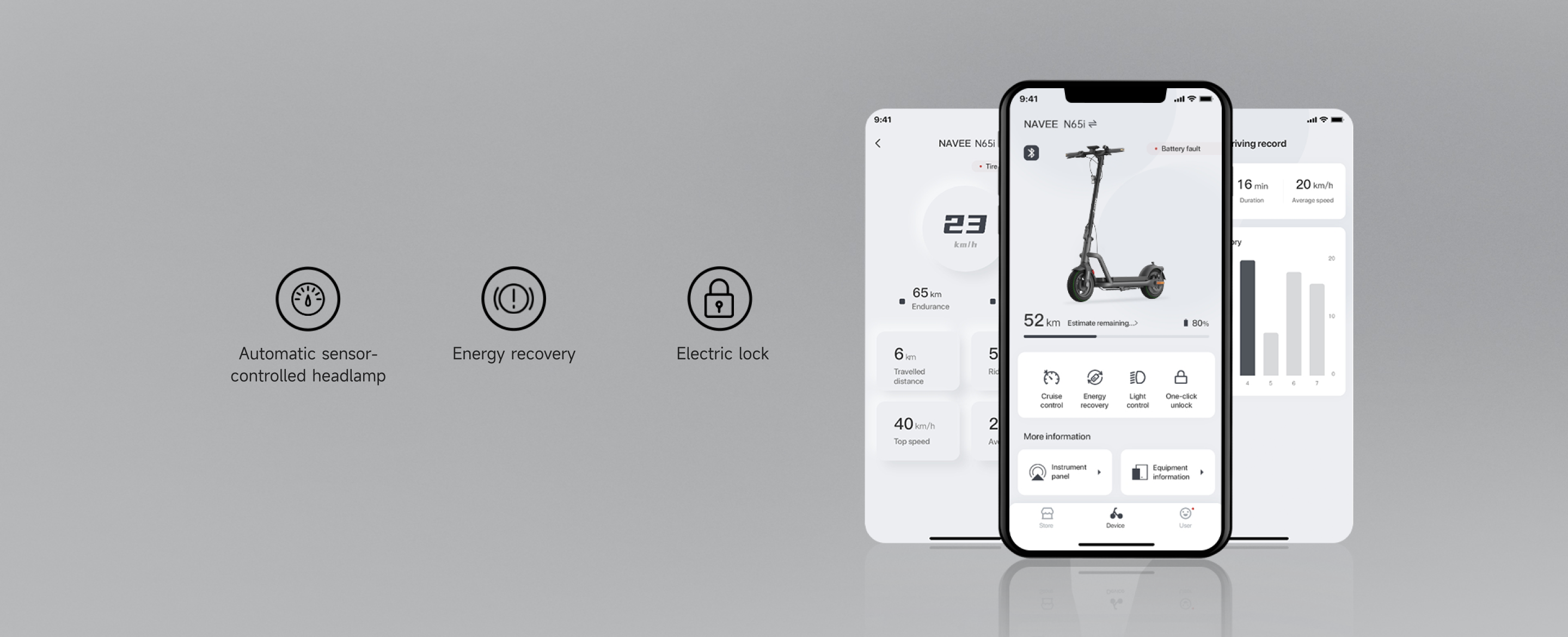 【SMARTE APP - INTEGRATION】Steuern Sie via NAVEE-App Geschwindigkeitsmodi (Gehen/D/Sport), aktivieren Sie den Diebstahlalarm oder analysieren Sie Fahrstatistiken. Die IPX5-Zertifizierung ermöglicht Regenfestigkeit - perfekt für deutsches Klima.
