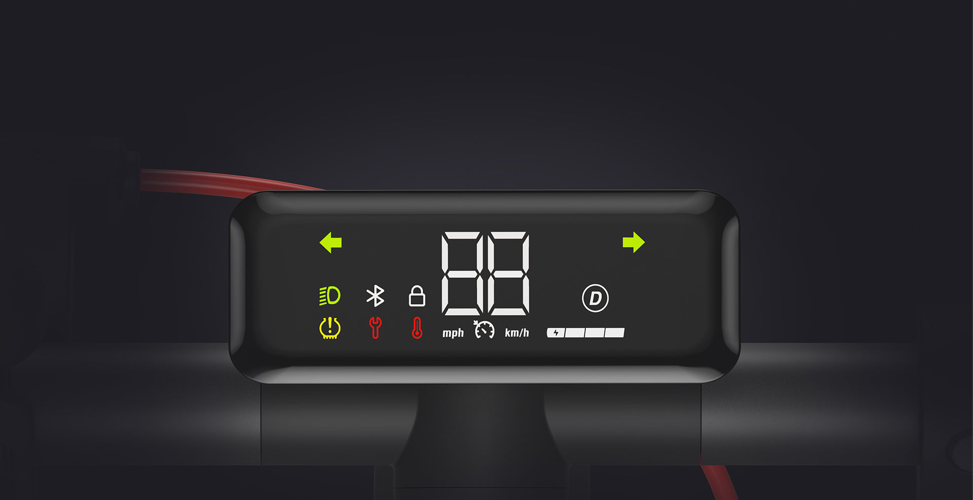 【4-ZOLL-SCHWEBEDISPLAY】Das sonnenlichttaugliche Display zeigt Echtzeitdaten (20 km/h Maximalgeschwindigkeit, Akkustand, Fahrmodus) für sicheres Nachtfahren. Integrierte E-Mark Blinker und 10" Luftreifen mit Doppelstoßdämpfung garantieren Komfort auf Kopfsteinpflaster.