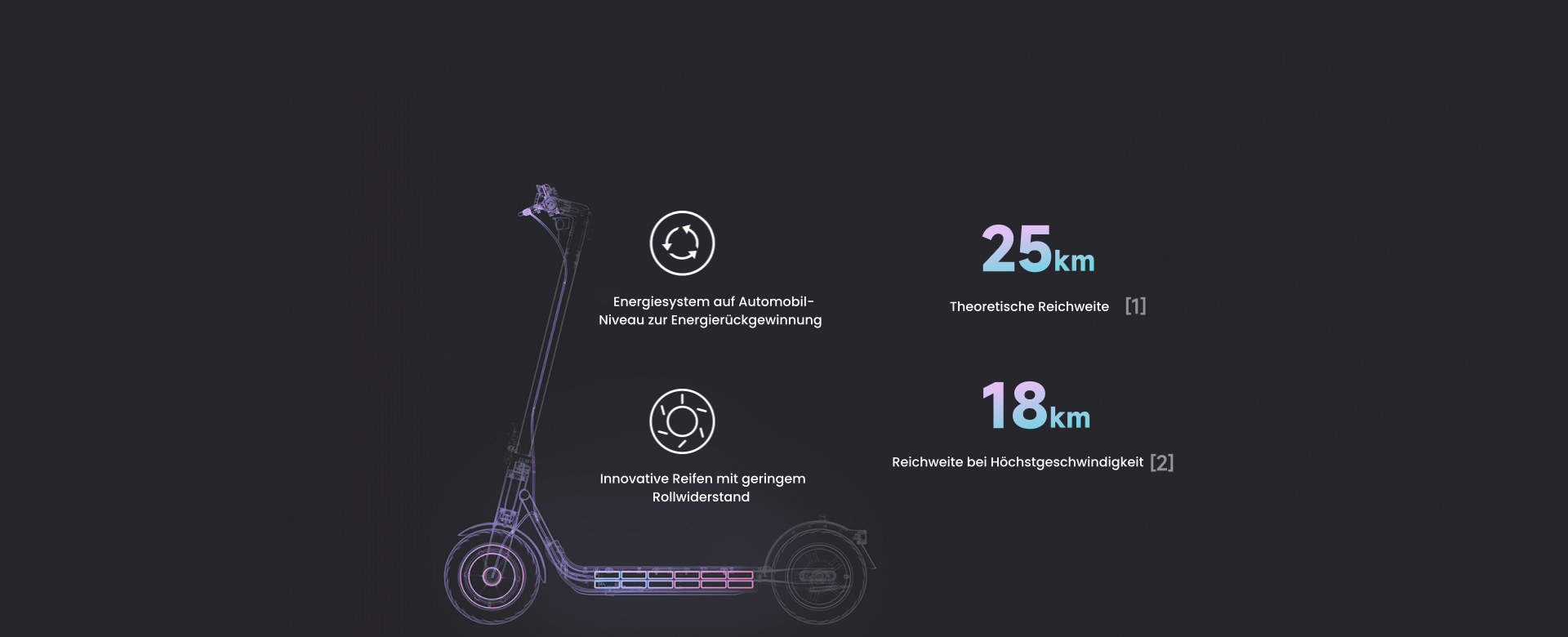 【ENERGIERÜCKGEWINNUNGSSYSTEM】Innovative Rekuperationstechnik wandelt Bremsenergie in 5-8% zusätzliche Reichweite um. Kombiniert mit der 36V/5,1Ah Lithium-Batterie erreichen Sie bis zu 25km (Eco-Modus) - perfekt für tägliche Pendelstrecken.